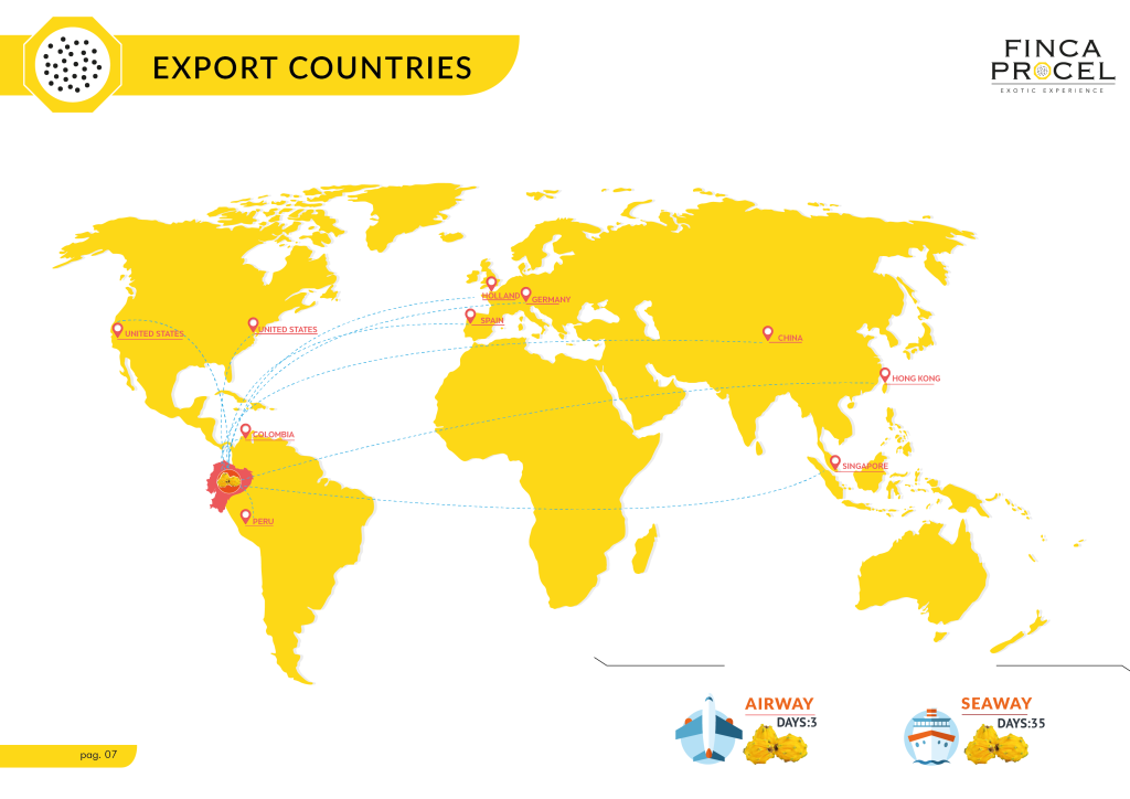 Finca Procel grows and exports premium yellow dragon fruit directly from Palora, Ecuador — a region renowned for producing some of the sweetest pitahaya in the world.